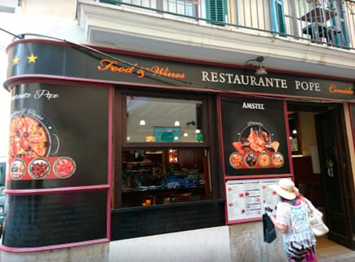 Situado en la calle principal de la Lonja,en el barrio del Born de Palma, centro histórico cercano a la Catedral, encontrareis, el restaurante Pope, con su entrada informal que asemeja un bar de tapas y su ambiente joven y dinámico, descubrireis una deliciosa comida mallorquina en un entorno cuidado y de excelente trato. Tanto si pedis unas tapas como una parrillada de pescado fresco, deleitareis de unos generosos manjares de altisima calidad a un precio muy bueno.
